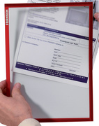 ProductinformatieTransparante en magnetische documenthouder, stijve film 0,32mm, gekleurde rand van 10 mm, magnetische strips aan 3 zijden op de achterkant, vervormt het document niet, mat.