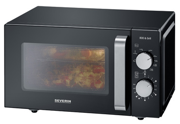 ProductinformatieVermogen: ca. 800 Watt, 20 liter, innovatieve vlakke bodemin keramiek met reflector, met extra rooster, kleur: zwart/zilver,afmetingen: (L)462 x (D)395 x (H)270 mm, stekker met aarding - voor CH, vaste adapterinbegrepen.