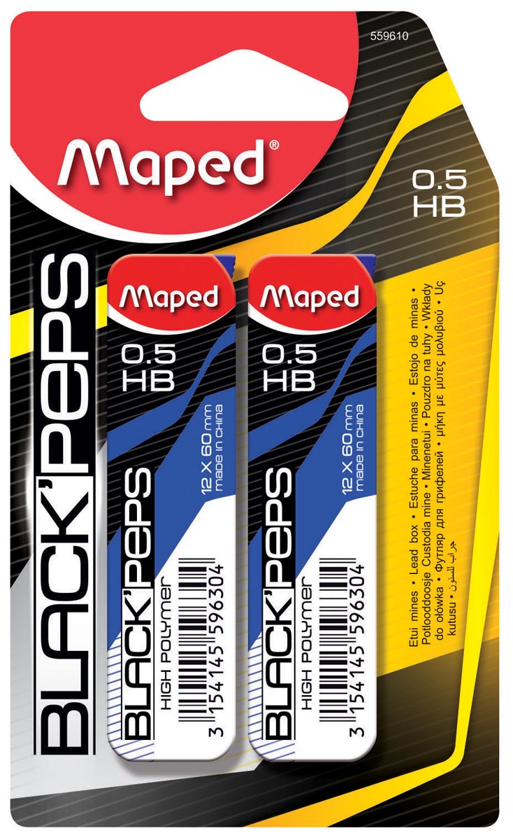 ProductinformatieHi-polymeer potloodstiften van hoge kwaliteit. Hardheid: HB. Blister met 2 etuis van 12 mines.