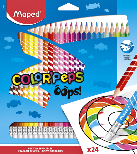 ProductinformatieKleurpotloden Oops - uitgumbare kleurpotloden met een goede kleurafgifte en uitgumbaarheid Kleurpotloden zonder hout en met een gumtip Driekantige vorm voor een betere grip Diameter vulling is 2,9 mm.