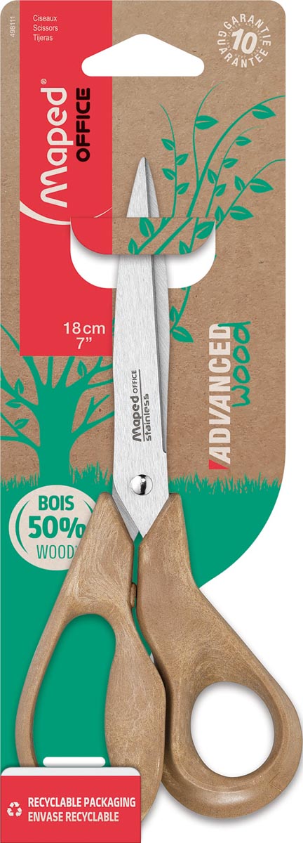 Maped Office Advanced Wood schaar, 18 cm, asymmetrisch