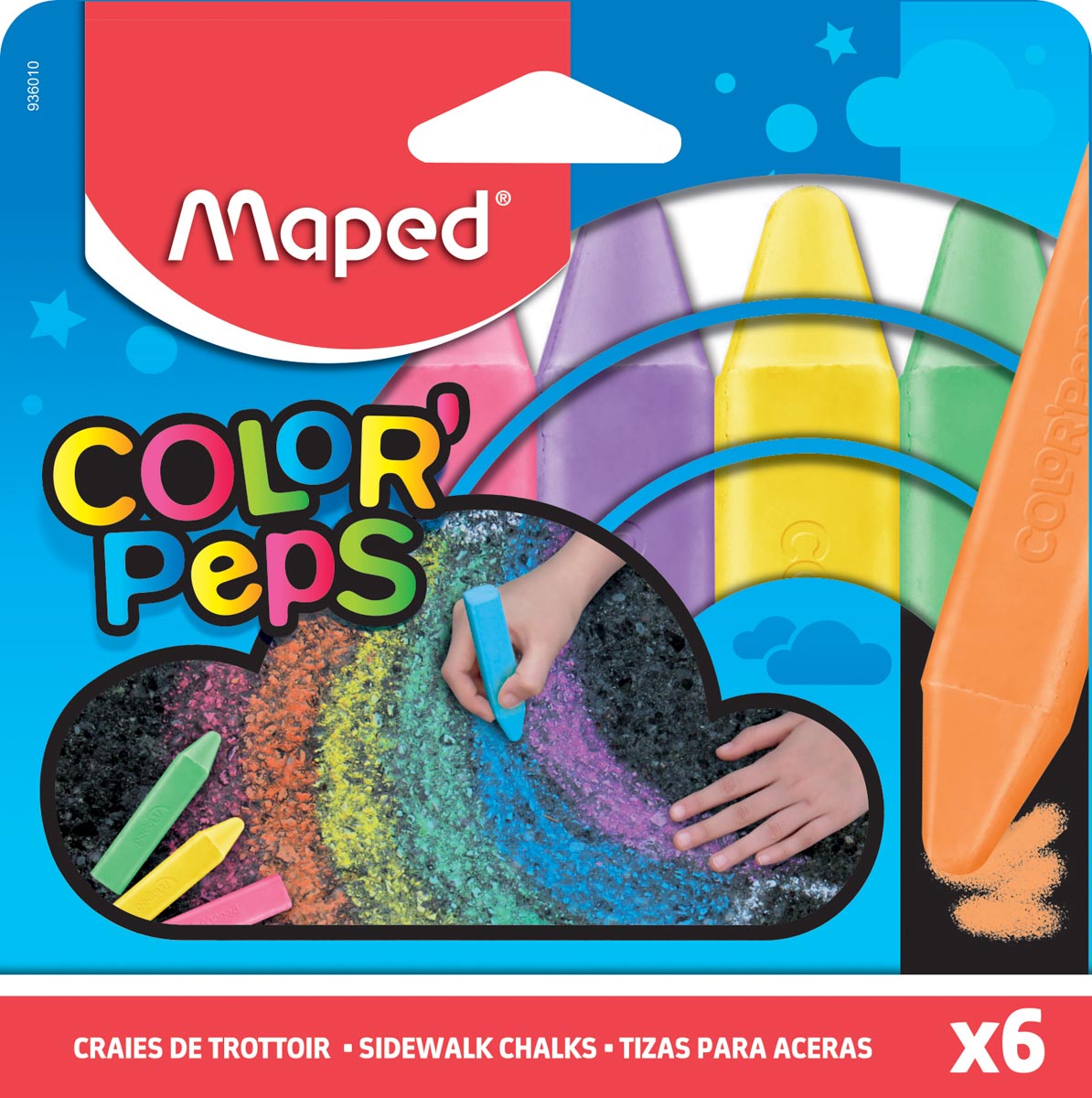 ProductinformatieGroot formaat voor een betere grip. Gemakkelijk schoon te maken : volledig af te wassen met water. Ideaal op asfalt. Doosje met 6 stuks. Geassorteerde kleuren.
