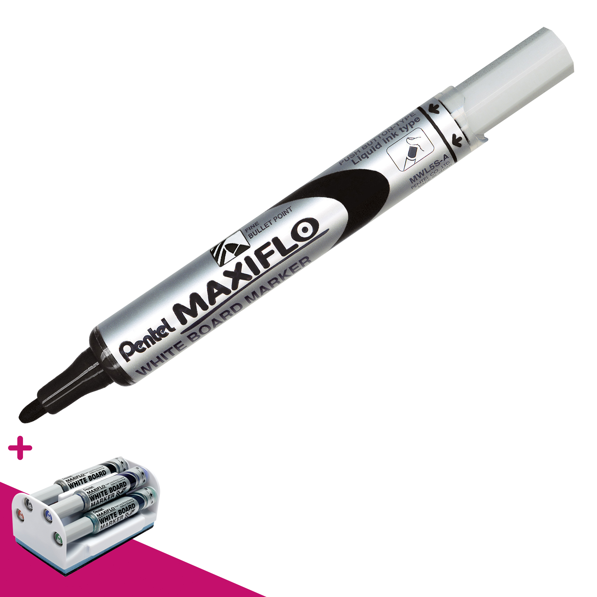 De uitwisbare Maxiflo markeerstift van Pentel: de onmisbare metgezel voor effectieve presentaties, vergaderingen of lessen op het whiteboard!