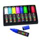 Verf op basis van water en pigmentinkt. Zware, ondoorlatende en dekkende kleuren geschikt voor overlappingen en aquarellen. Water- en lichtbestendig. Houdt op alle ondergronden (uitwisbaar op ruiten, onuitwisbaar op poreuze oppervlakken). Ondoorlatende plastic. Schuine punt lijnbreedte 8 mm. Doos van 8 markers, geassorteerde kleuren.