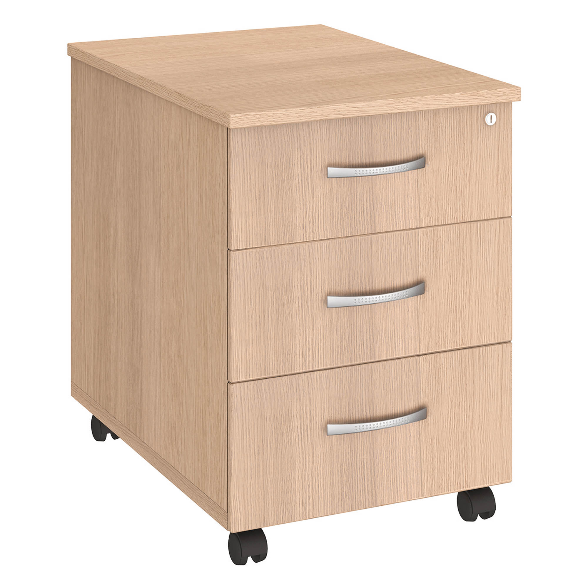 Het ladeblok van Bruneau Excellens verenigt robuustheid en nut. Hij dankt zijn weerstand aan zijn structuur in gemelamineerde spaanplaat met een dikte van 19 mm. Dit model beschikt over een grote capaciteit met een lade voor platte opberging en een lade voor 45 hangmappen. Bovendien heeft dit kastje ook een stevig en uitneembaar pennenbakje in zwart ABS. Esthetisch: dit model is uitgerust met metalen handvatten met een aluminiumkleurige afwerking, die mooi ergonomisch gevormd zijn. Om de documenten te beveiligen, volstaat het om het ladeblok via het gecentraliseerd systeem te vergrendelen (slot met 2 sleutels). Praktisch: voorzien van 4 wieltjes, voor een gemakkelijke verplaatsing. Bovendien is er ook een 5de wieltje toegevoegd, tegen het kantelen. Maak uw keuze tussen 2 of 3 laden en 4 voorgestelde kleuren: wit, lichtgrijs, beuk en kerselaar. Franse makelij. Afmetingen: ladeblok: B 42 x D 60 x H 58 cm. Lade voor hangmappen: H 24 x B 33 x D49,5 cm. Lade voor platte opberging: H 6 x B 33 x D 49,5 cm. De montage is optioneel. Franse makelij, met uitzondering van de afwerking in lichte eik (vervaardigd in Europa).
