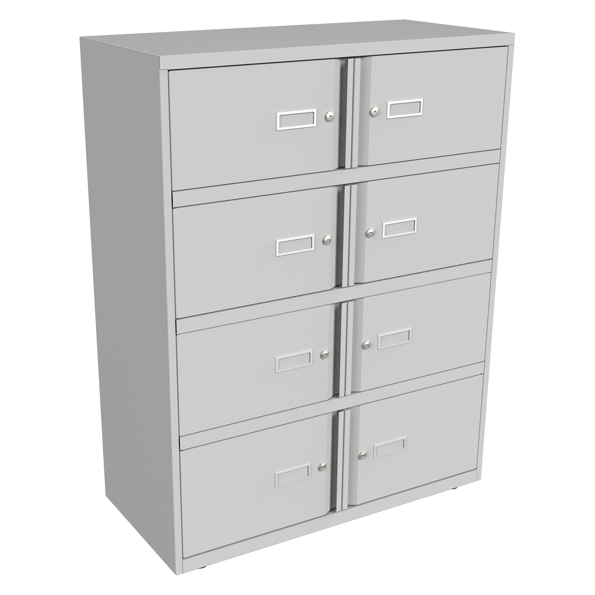 Persoonlijk opbergen in kwalitatieve stalen kastjes. Eenvoudig en functioneel design, maakt de inrichting van uw kantoor gemakkelijk. Alle kleerkasten zijn voorzien van AB-serie sloten. 1 sleutel per vak. Afmeting kastjes: B 44.5 x D 41 x H 26.7cm. Totale afmetingen: B 100 x D 44 x H 130 à 131,5cm. Beschikbaar in 5 kleuren: verkeerswit, lichtgrijs, zilvergrijs, antraciet en zwart. Gemonteerd geleverd.