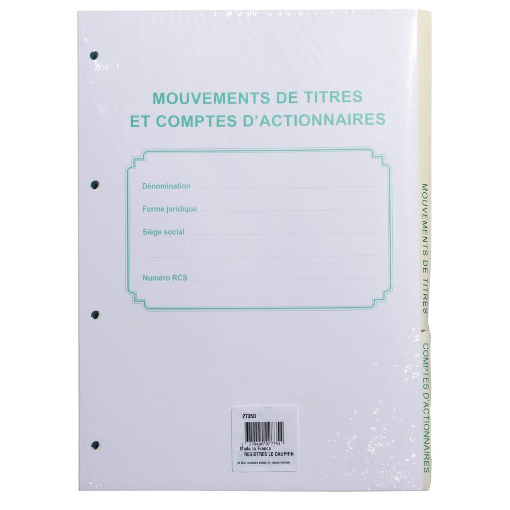 Navulling van 58 vellen, voor verplaatsingen van effecten, lijsten van aandeelhouders, met getiteld voorblad. Voor ringmap met rug van 37 mm.
