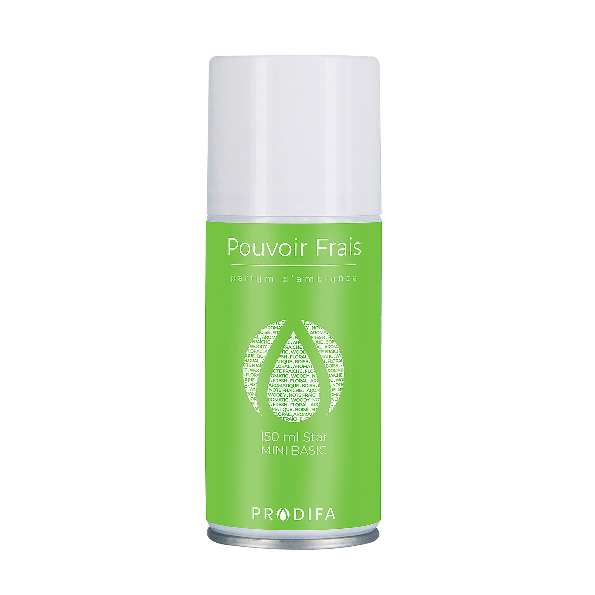 Een spuitbus met ventiel voor de programmeerbare compacte verspreider Prodifa, de navulling Eolia "Verse kracht" is zeer effectief en gemakkelijk te gebruiken.