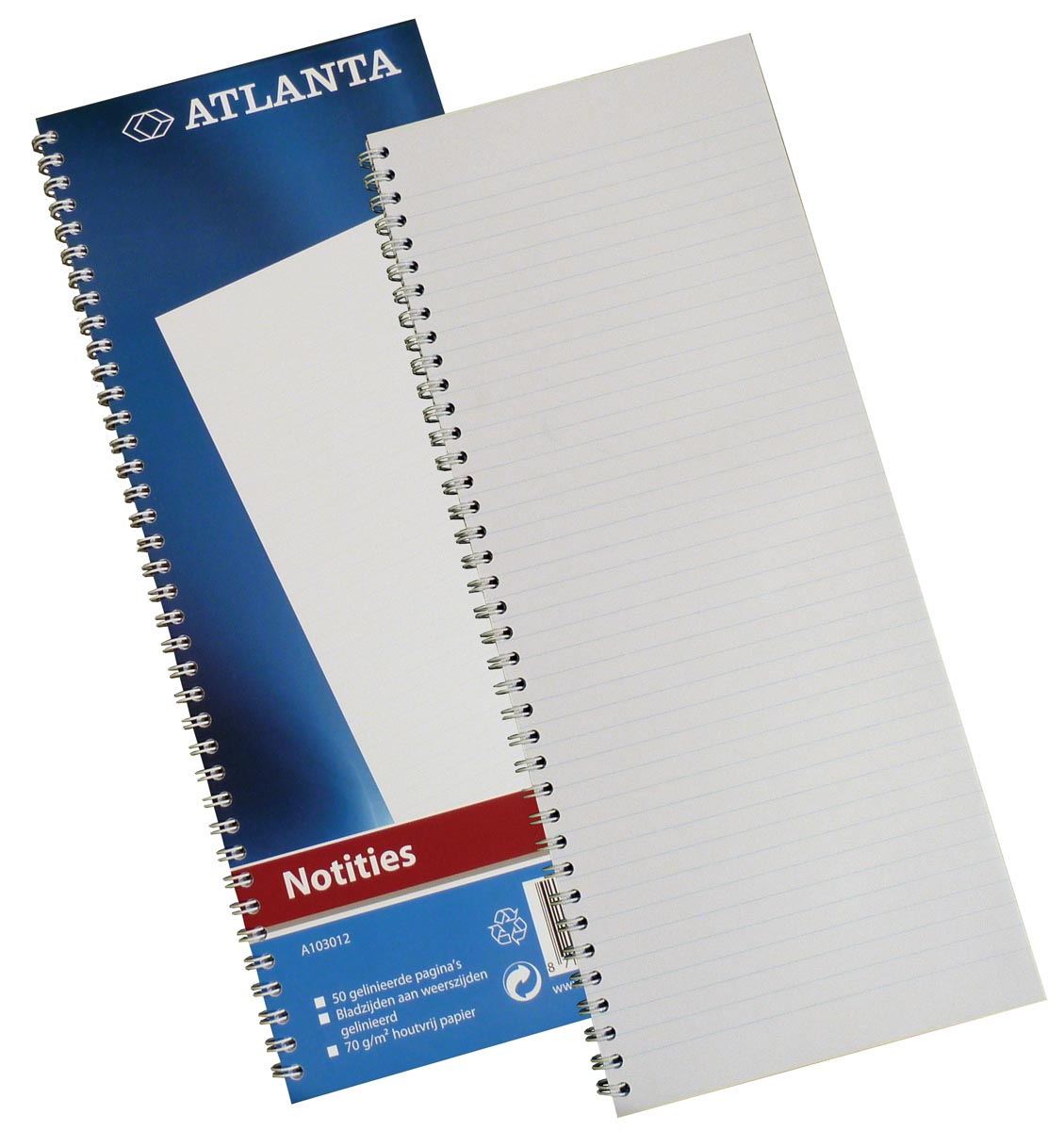 ProductinformatieKantoorboek met zijspiraal Houtvrij gelinieerd schrijfpapier Etiket op de voorzijde Formaat 330x135mm.