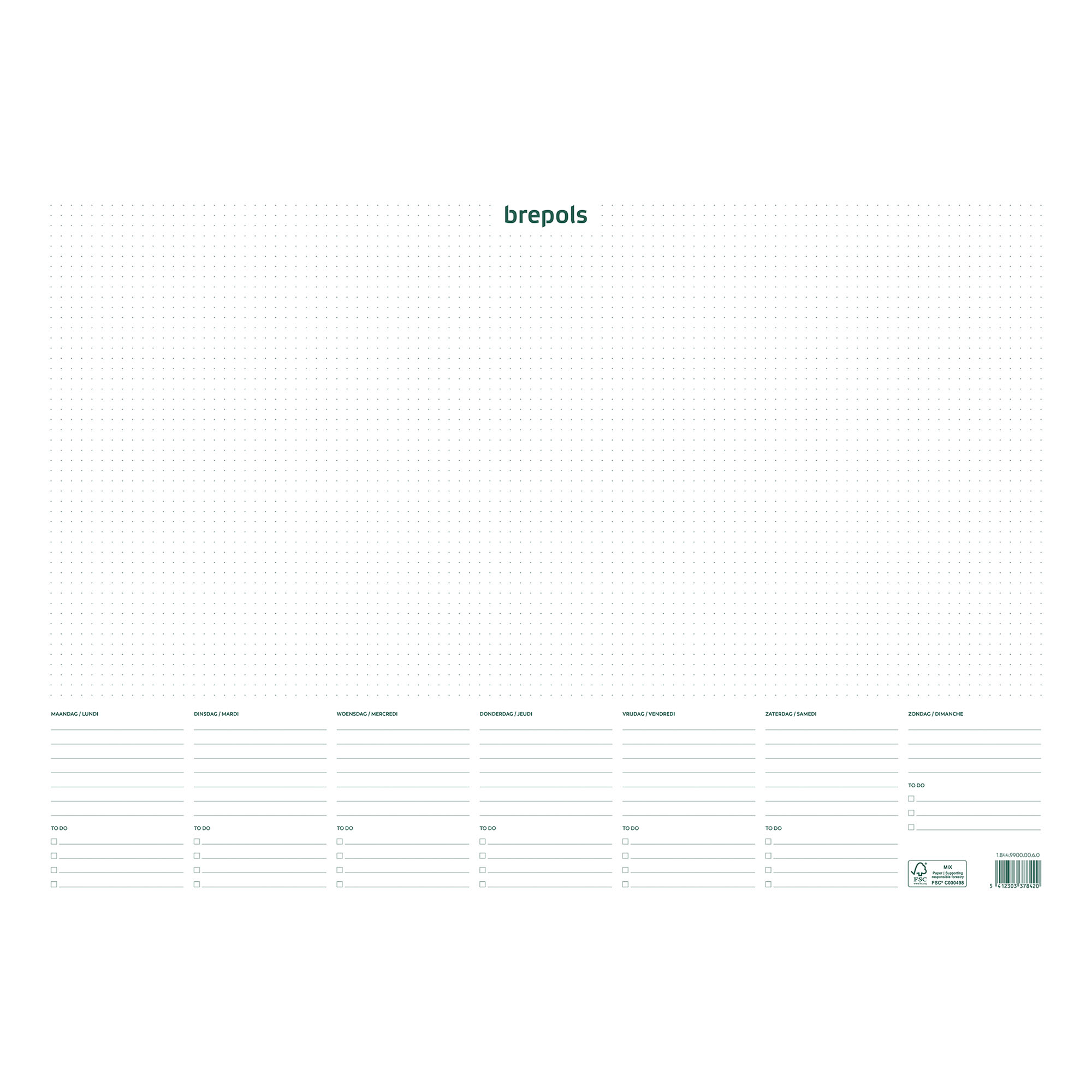 ProductinformatieTweetalig. 100% gerecycleerd papier. Met to do list. Ongedateerd. Blok met 40 vellen. Formaat 50 x 35 cm.