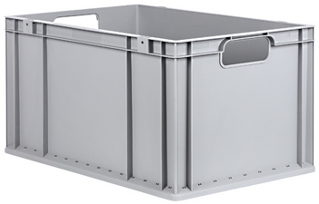 ProductinformatieEurobox in PP, open handgrepen, bestand tegenzuren en vetten, goede vormvastheid, stapelbaar,buitenafmetingen: (B)600 x (D)400 x (H)320 mm, nuttige afmetingen: (B)565 x (D)365 x (H)315 mm.