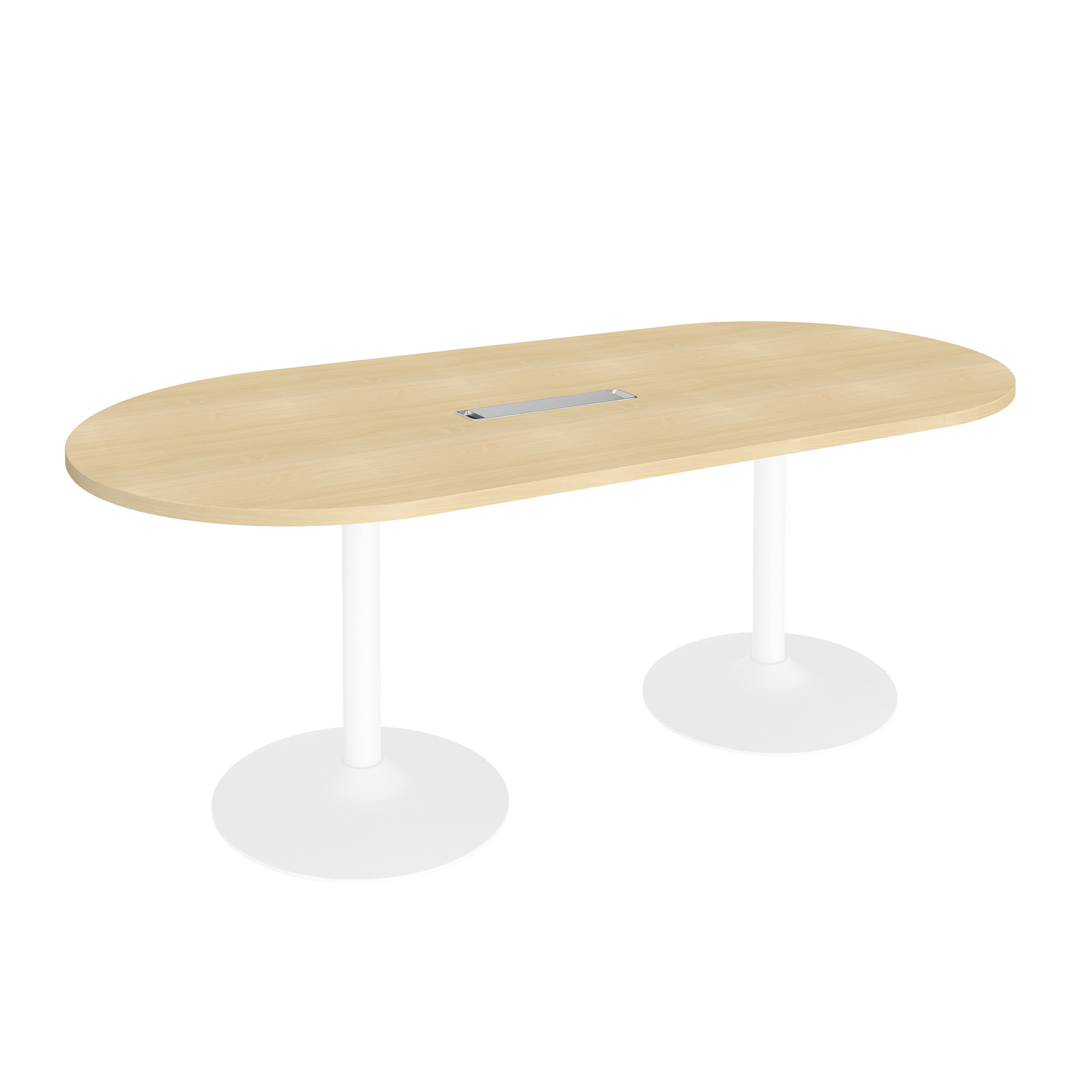 Kies voor de ovale Bruneau Excellens-tafel met top access om uw vergaderingen te houden zonder dat het krap aanvoelt. Deze ovale tafel van L 210 x D 100 x H 75 cm biedt plaats aan maximaal 8 personen. Gemaakt van gelamineerd spaanplaat (kras- en reflectiebestendig behandeld) met rechte ABS-randen, is dit meubelstuk zeer stevig. De 2 metalen kolompoten met epoxygelakte voet zorgen voor stabiliteit en nemen geen extra ruimte in beslag. Deze vergadertafel is PEFC-gecertificeerd. De top access met kabelgoot vergemakkelijkt het aansluiten van apparaten in het midden van de tafel zonder de ergonomie van uw ruimte te verstoren. Kies uit de 5 beschikbare tafelbladdecors (wit, licht eiken, grijs eiken, beuken en lichtgrijs) en de 3 beschikbare pootkleuren (aluminium, wit en antraciet). Montage optioneel. Pootdiameter: 60 cm.