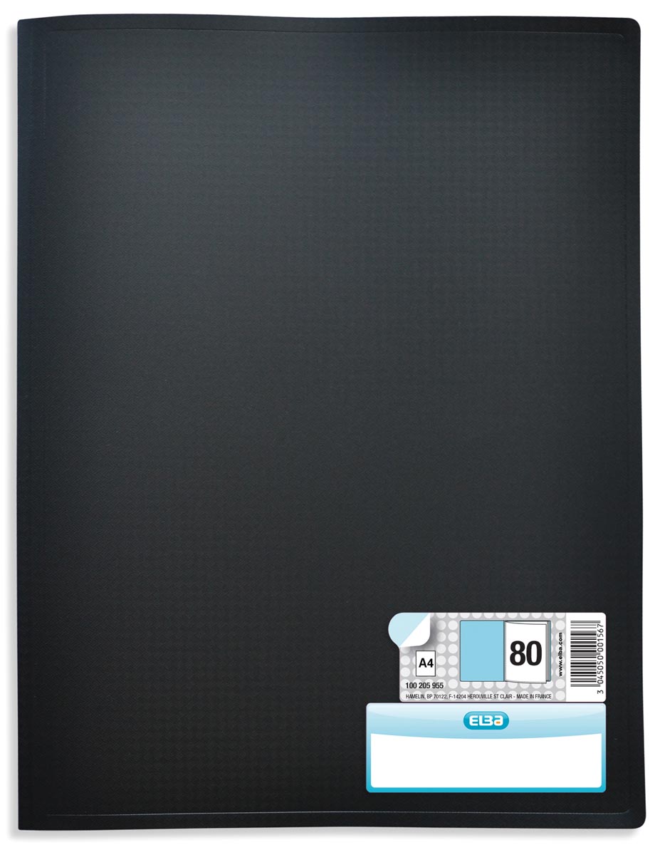 ProductinformatieVoor ft A4. Kaft en tassen uit PP. Met vaste, glasheldere tassen. Met personaliseerbaar etiket.