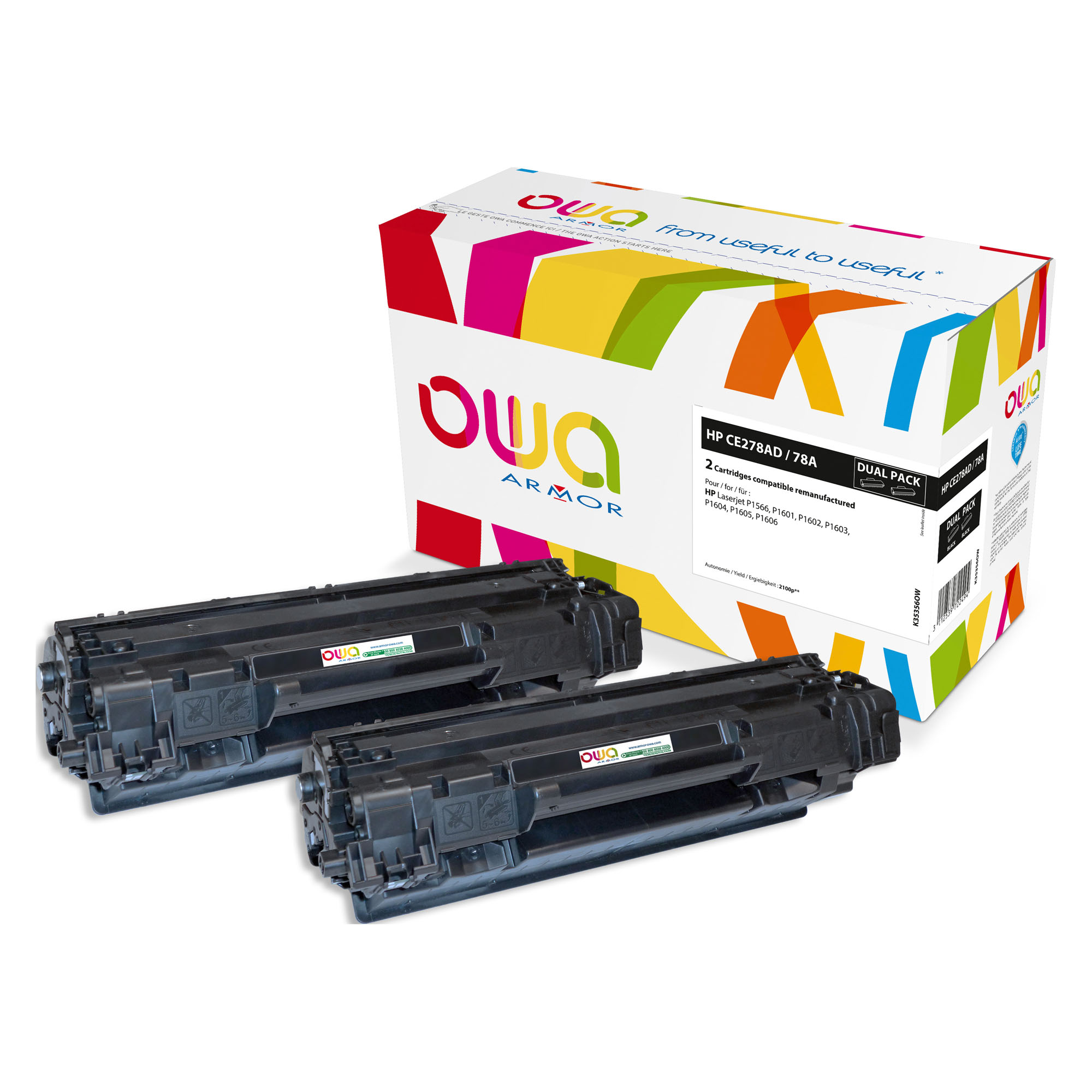 Andere cartridges met dezelfde compatibiliteitTonercartridge Owa HP 78A-CE78A zwart voor LaserJet2 reviewsvanaf€ 69 ex btwPack 2 zwarte toners Armor Owa compatibel HP 78A - CE278AD3 reviews€ 113,22 ex btwTonercartridge OWA alternatief tbv HP CE278A zwartvanaf€ 61,95 ex btwPack van 2 toners HP 78A zwart202 reviews€ 232 ex btwToner Xerox zwart alternatief voor Toner HP 78A (CE278A) 2 reviewsvanaf€ 56,40 ex btwToner HP 78A zwart206 reviewsvanaf€ 127 ex btw