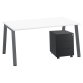 Werkblad vooraf uitgesneden: u kunt kiezen om een centrale top access en 2 ronde of vierkante afsluitdoppen (80 mm) toe te voegen (optioneel). Verschillende soorten accessoires zijn compatibel met deze openingen van 80 mm: enkele kabeldoorvoer, draadloze inductielader, inbouwstopcontact...Boogvormig onderstel in staal, beschikbaar met 3 afwerkingen: aluminium, wit of antraciet. Regelvijzels voor aanpassing in de hoogte.