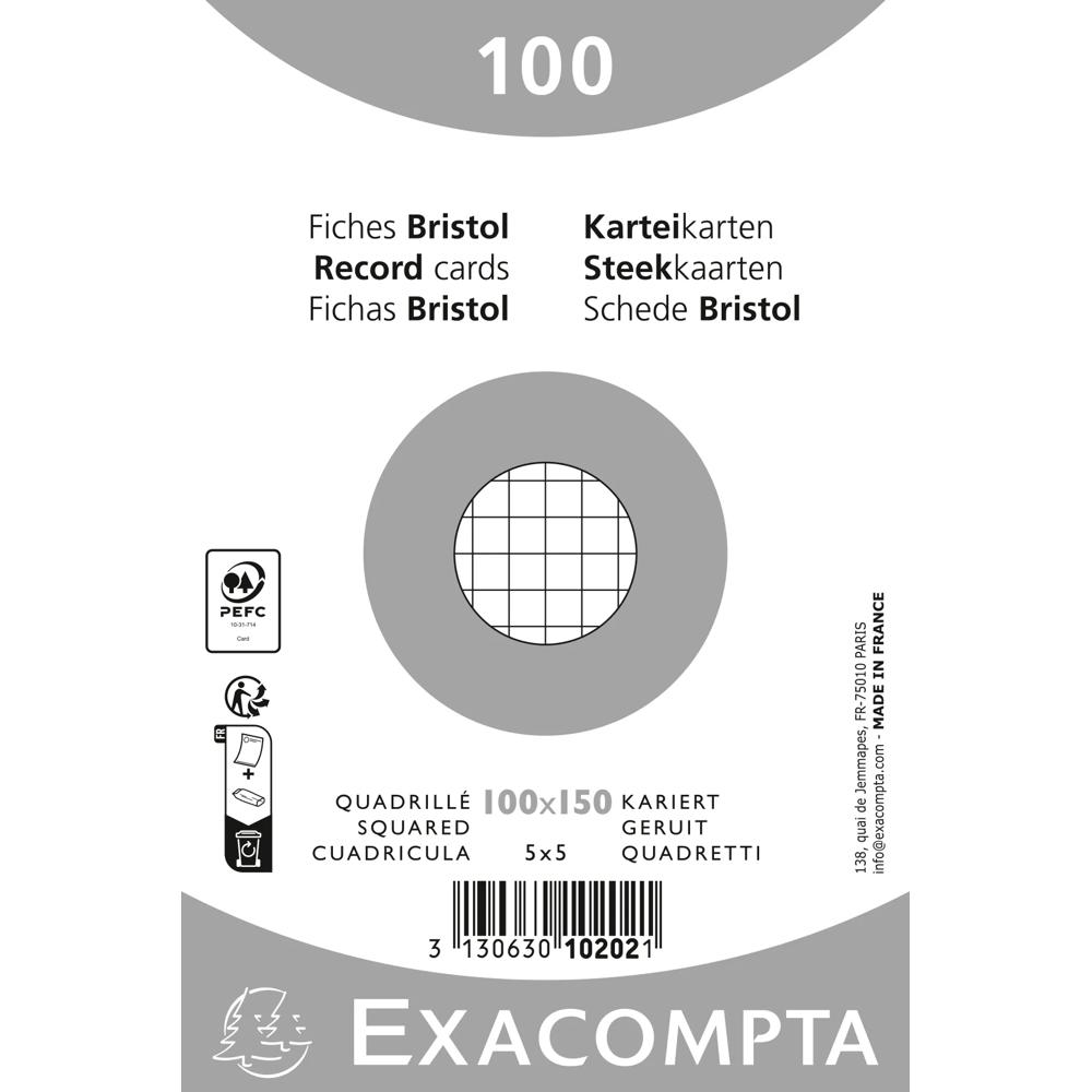 Pak 100 steekkaarten bristol in folie - geruit 5x5 niet geperforeerd 100x150mm - Wit
