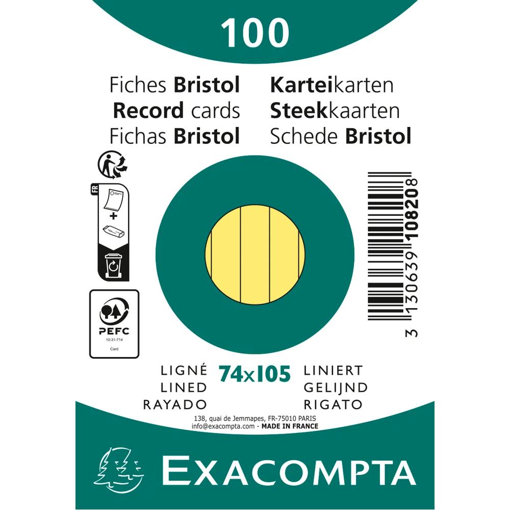 Kwalitatief en zeer consistent papier. Hoogwaardige productiekwaliteit op basis van papierpasta afkomstig van duurzaam beheerde bossen en gebleekt met een neutrale pH. De Bristol-steekkaarten zijn stevig en geschikt voor veelvuldig gebruik. Ze bieden een groot schrijfgemak. Elke soort steekkaart (geruit, effen, geperforeerd, bedrukt, kleurassortiment...) heeft een verpakking met een andere kleur voor een d uidelijk overzicht en een mooie opbouw van de presentatie.