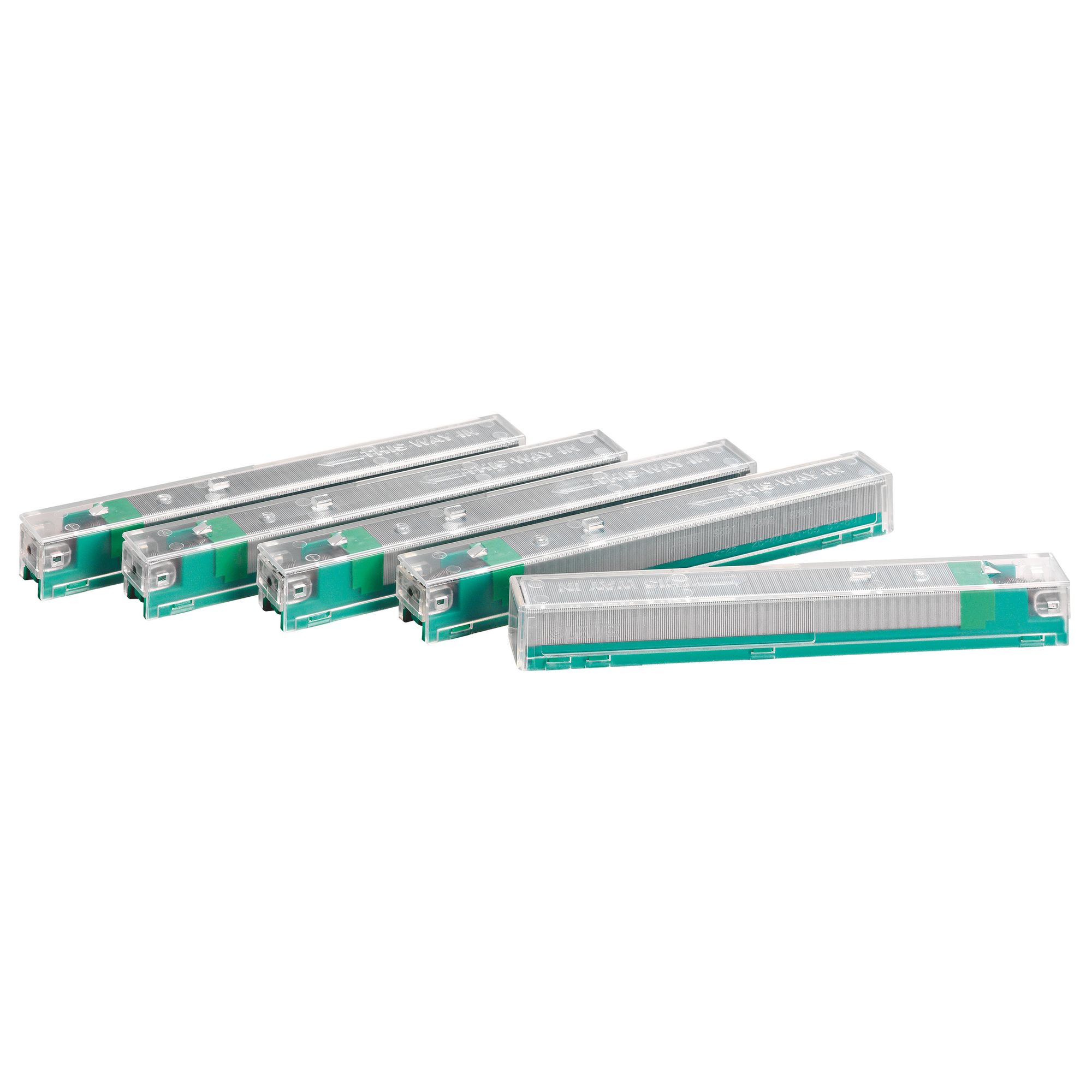 ProductinformatieDoos met 5 navullingen van 210 nietjes Leitz K10 groen (26/10). Voor het nieten van max. 55 vellen.