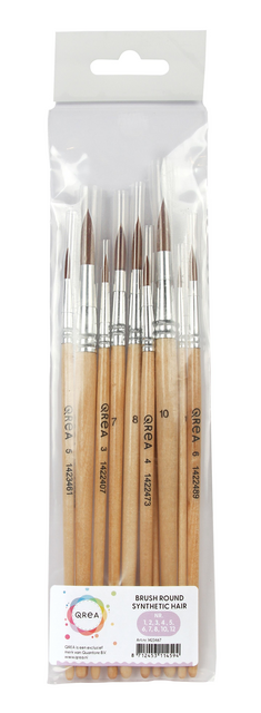 Ontdek de perfecte penseel voor jouw kunstwerken, deze penselen zijn ontworpen voor serieuze kunstenaars zoals jij. Met hun ronde, puntige vorm en naadloze aluminium bus bieden ze ultieme precisie en controle. Kort en natuurlijk gelakt, deze kwasten zijn veelzijdig en geschikt voor een breed scala aan toepassingen, of je nu werkt met aquarel, olie of acryl. De penselen hebben een hoge vormvastheid en elasticiteit, waardoor je elke keer weer consistente en verbluffende resultaten kunt bereiken. * Deze set bevat 10 breedtes, nummer 1, 2, 3, 4 , 5, 6, 7, 8, 10 en 12, van 2,7mm tot 7,1mm. * Blank houten gelakte steel. * Synthetisch bruin haar. * Naadloze aluminium bus. * Geschikt voor aquarel-, plakkaat-, olie- en acrylverf.* Geproduceerd in Duitsland.