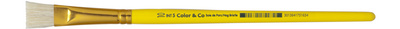 Het gele houten handvat van de penseel zorgt voor een comfortabele en ergonomische grip, waardoor u urenlang kunt werken zonder vermoeidheid. De metalen huls garandeert de stevigheid en duurzaamheid van de penseel en houdt de haren stevig op hun plaats.