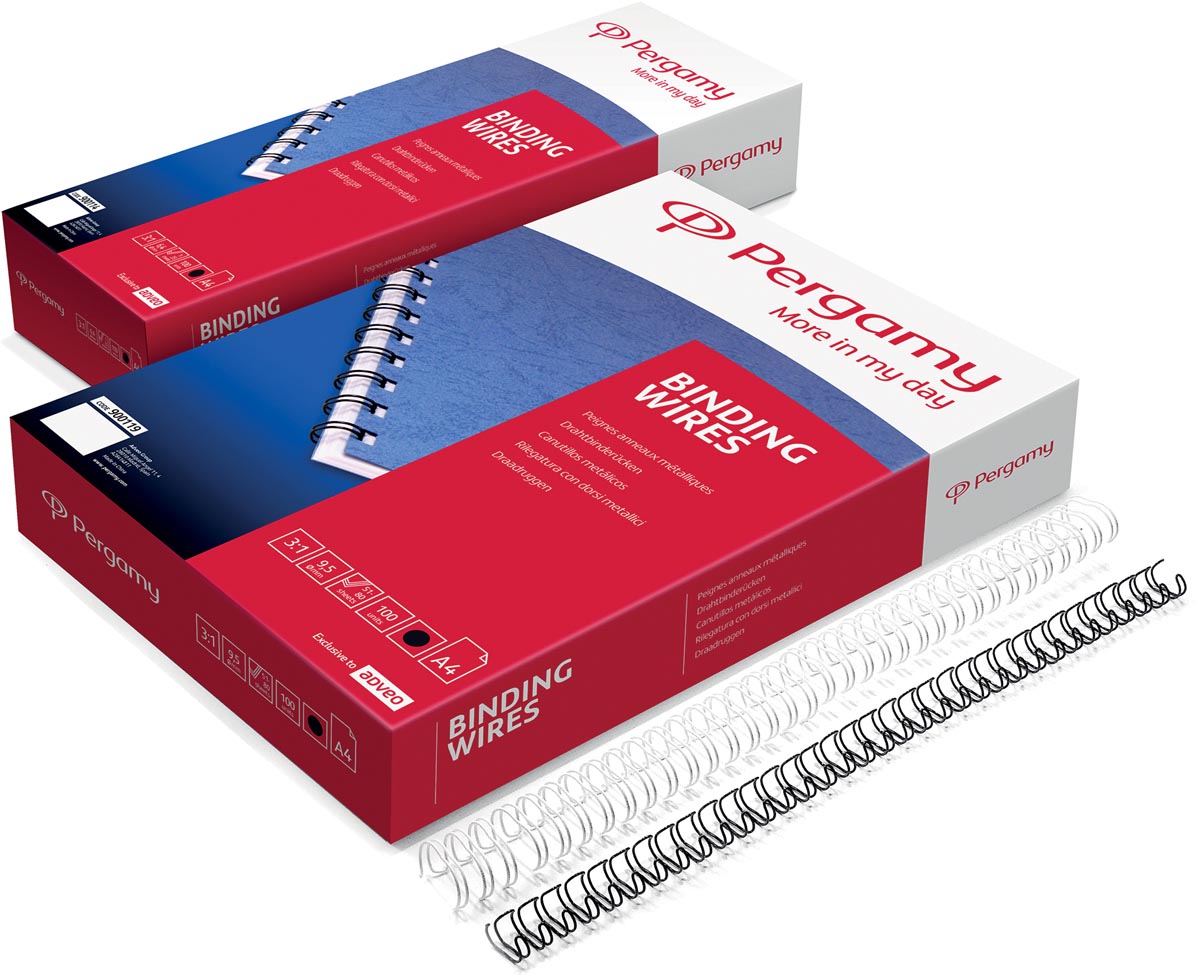 Deze metalen draadruggen zijn ideaal voor zakelijke en academische rapporten, die vaak een groot aantal documenten bevatten. De pagina's liggen vlak en draaien 360 graden voor perfect gebruiksgemak. In wit of zwart, met verschillende afmetingen. Uw documenten ogen elegant en professioneel. 34 ringen. Pak van 100 stuks.