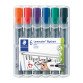 De Staetdler Lumocolor 356-marker is ideaal voor papieren borden, de inkt dringt niet door. Het is wasbaar op de meeste stoffen. Het bevat geen xyleen of tolueen. Het is vliegveilig: de automatische drukbalancering voorkomt dat de pen lekt.