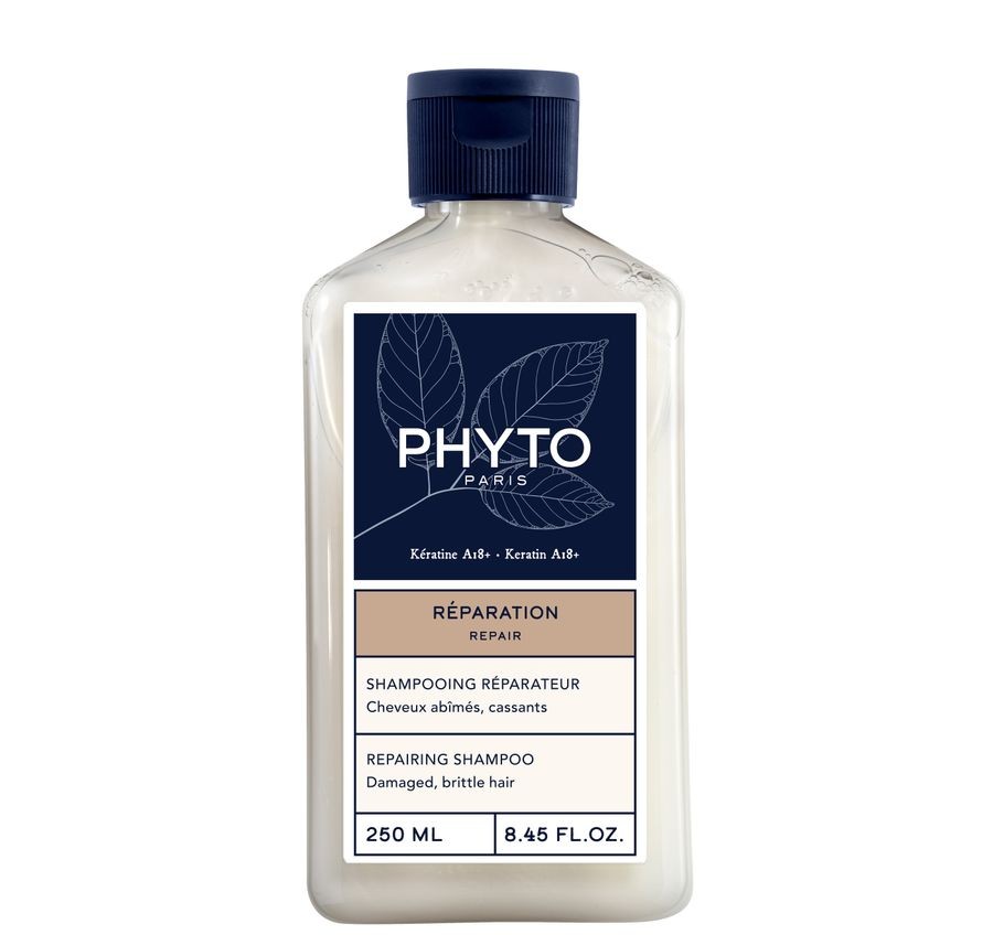 De PHYTO Repair Herstellende Shampoo is speciaal ontwikkeld voor beschadigd en broos haar. Deze shampoo reinigt het haar op milde wijze en herstelt de haarvezels door het biomimetische complex Keratin A18+, bestaande uit 18 versterkte aminozuren. Dit complex werkt als een intravezelvuller om de haarstructuur te herstellen en beschadigde vezels te versterken. Daarnaast bevat de formule witte malve-extract, dat de glans van het haar verhoogt, waardoor het haar twee keer zo glanzend wordt. De shampoo is vrij van sulfaten, siliconen en kleurstoffen en bevat 92% ingrediënten van natuurlijke oorsprong.