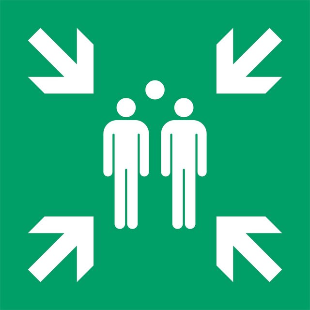 Eenvoudig te monteren kunststof bordje voor het weergeven van een verzamelplaats. Voldoet aan de algemene ISO 7010 norm, die in Europa wordt erkend.Dit symbool duidt op een eenvoudige manier aan waar men zich in een geval van nood moet verzamelen.Productvoordelen; * Voor het weergeven van de locatie waar men zich in geval van nood moet verzamelen. * Symbool volgens ISO 7010 (E007). * Gemaakt van 1,4 mm dik recyclebaar kunststof. * Formaat: (B) 300 mm * (H) 300 mm. * Kleur: Groen-Wit. * Excl. bevestigingsmateriaal. * TIP: bevestig het bordje eenvoudig aan de wand met dubbelzijdige tape of schroef enkele schroeven door het bordje heen.