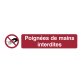 Zelfklevende sticker met pictogram ‘poignées de mains interdites’. Formaat 200 mm x 80mm. Prijs per stuk.