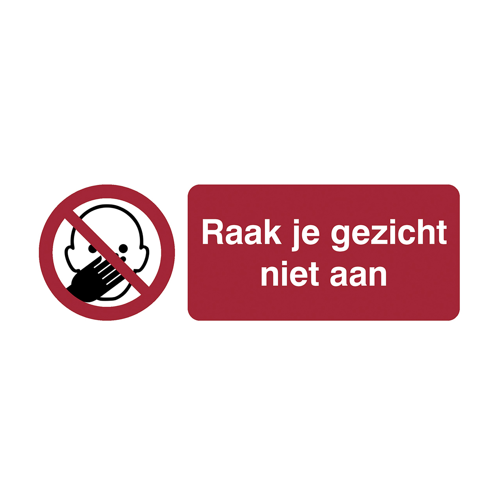 Zelfklevende sticker met pictogram ‘raak je gezicht niet aan’. Formaat 200 mm x 80mm. Prijs per stuk.