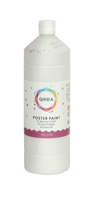 Breng je creatieve ideeën tot leven met de witte plakkaatverf van Qrea! Deze duurzame en hoogwaardige verf is perfect voor zowel beginners als ervaren kunstenaars. Gemaakt in Nederland en geproduceerd met 98% natuurlijke ingrediënten, biedt deze verf een veilige en milieubewuste keuze. Dankzij de Europese veiligheidsnorm EN-71 en het CE-keurmerk ben je verzekerd van een betrouwbaar product. De gebruiksklare formule op waterbasis hecht uitstekend op diverse oppervlakken en zorgt voor een prachtige, matte witte afwerking. De kleuren zijn goed mengbaar, zodat je eenvoudig nieuwe tinten kunt creëren. Let op: na droging is de verf niet uitwasbaar, wat garant staat voor een blijvend resultaat. Bovendien is dit plakkaatverf glutenvrij en vegan. Ideaal voor thuis, op school of in een creatieve studio!Kenmerken:* Kleur: wit.* Inhoud: 1000ml.* Veiligheid: voldoet aan EN-71 en voorzien van CE-keurmerk.* Samenstelling: 98% natuurlijke ingrediënten, glutenvrij en vegan.* Gebruiksklaar: op waterbasis en uitstekende hechting.* Afwerking: droogt mat op en is niet uitwasbaar.* Extra: verkrijgbaar in 10 verschillende kleuren.* Herkomst: geproduceerd in Nederland.