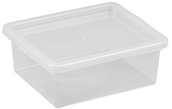 ProductinformatieDoos en deksel, kleur: transparant, materiaal: PPR,stapelbaar, voorzien van een klikdeksel, de brede rand van het deksel zorgt voor een goede stabiliteit en een goede grip, afmetingen: (B)205 x (D)170 x (H)75 mm.