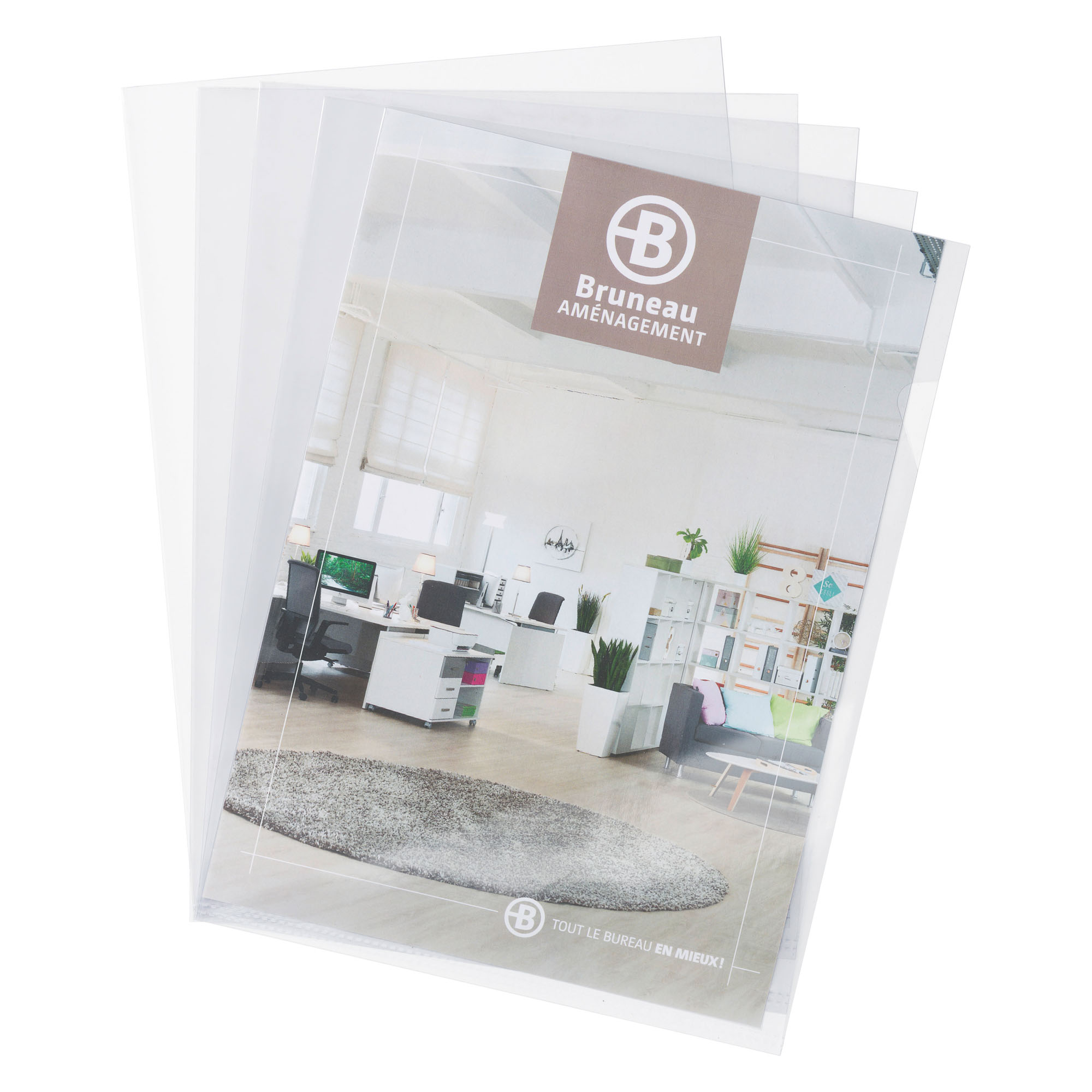 Verkocht in een pak van 50. Dit L-mapje in plastic van Bruneau (Franse makelij) is ideaal voor een ingenieus klassement of mooie presentatie van uw documenten. De gekorrelde afwerking is uiterst kwalitatief, en dankzij het doorzichtige aspect zijn uw dossiers steeds zichtbaar.