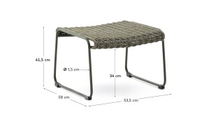 Dit voetenbankje, exclusief ontworpen door Yonoh Studio voor Kave Home, vindt de mediterrane essentie opnieuw door middel van een eigentijdse en levendige benadering. Door de gegalvaniseerde stalen structuur onderscheidt hij zich door zijn duurzaamheid dankzij de weerstand tegen roest en corrosie en zijn vermogen om te passen in alle soorten buitenruimtes. De zitting en rugleuning, gemaakt van handgeweven, UV-bestendig touw en bevestigd aan een buizenstructuur, bieden comfort en een unieke stijl. Het slede-ontwerp en de royale zitmaten zorgen voor een ongeëvenaarde comfortabele ervaring. Dit meubel maakt deel uit van de Maurina collectie, die de schoonheid van traditionele materialen en vakmanschap combineert met eigentijdse lijnen, ideaal voor diegenen die een balans zoeken tussen tijdloos en eigentijds in hun huis.
