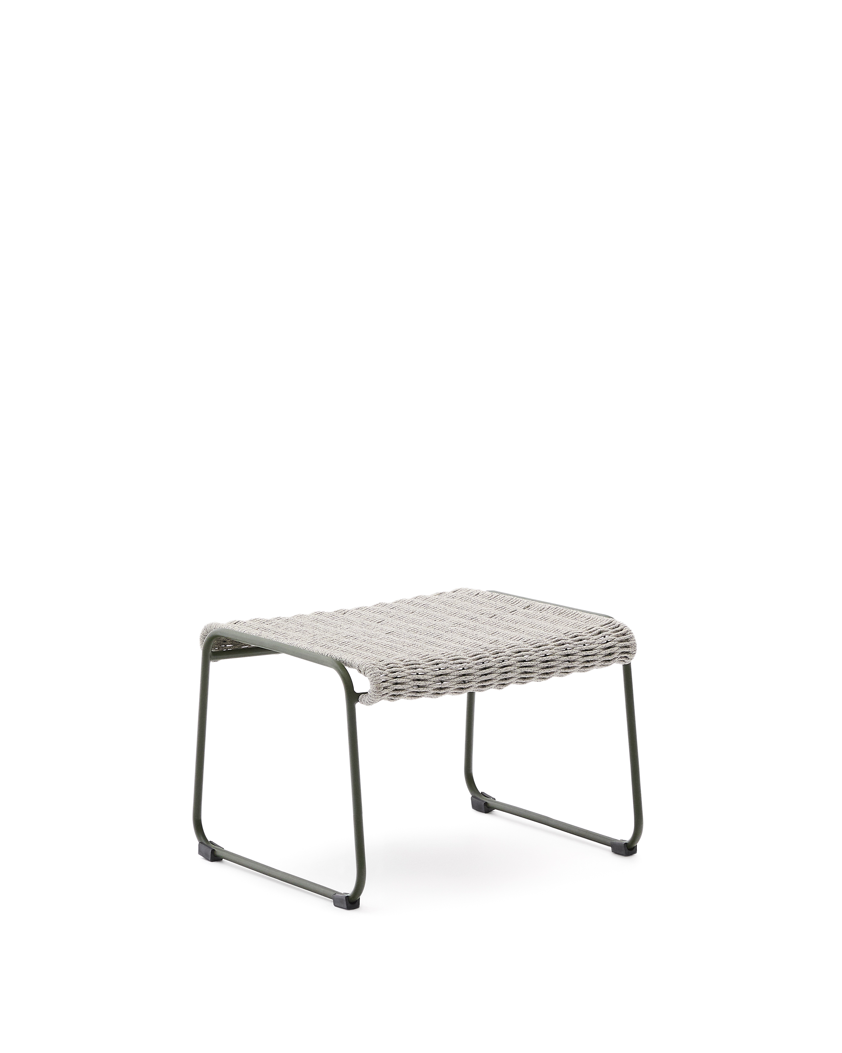 Dit voetenbankje, exclusief ontworpen door Yonoh Studio voor Kave Home, vindt de mediterrane essentie opnieuw door middel van een eigentijdse en levendige benadering. Door de gegalvaniseerde stalen structuur onderscheidt hij zich door zijn duurzaamheid dankzij de weerstand tegen roest en corrosie en zijn vermogen om te passen in alle soorten buitenruimtes. De zitting en rugleuning, gemaakt van handgeweven, UV-bestendig touw en bevestigd aan een buizenstructuur, bieden comfort en een unieke stijl. Het slede-ontwerp en de royale zitmaten zorgen voor een ongeëvenaarde comfortabele ervaring. Dit meubel maakt deel uit van de Maurina collectie, die de schoonheid van traditionele materialen en vakmanschap combineert met eigentijdse lijnen, ideaal voor diegenen die een balans zoeken tussen tijdloos en eigentijds in hun huis.