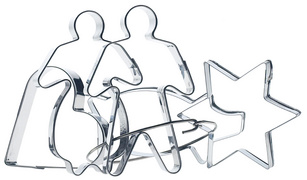 ProductinformatieRoest niet, dankzij de geslepen randen kun je eenvoudig figuurtjes snijden uit brood of deeg, geschikt voorvaatwasser, motieven: vrouw, man, ster, varken, hart.