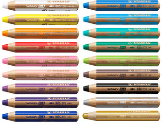 ProductinformatieKleurpotlood, aquarelpotlood en waskrijt in 1,stiftdikte: 10 mm, lengte: 115 mm, duurzame stift,grote dekkingskracht, schrijft ook op gladde oppervlakken,zoals glas, etc.