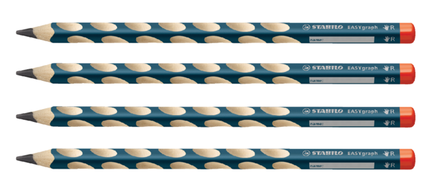 Ergonomisch grafietpotlood speciaal voor links- en rechtshandigen Driehoekige vorm en unieke anti-slip uitsparingen verzekeren een ontspannen ligging in de hand Ideaal voor het aanleren van een ergonomisch correcte schrijfhouding Geel of rood uiteinde geeft links- of rechtshandige versie aan Hout uit duurzaam beheerde bossen (PEFC gecertificeerd) 3,15mm kern, hardheid HB Kwalitatieve, break-proof kern De potloden worden geslepen geleverd.