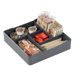 ProductinformatieMet dit plateau kan u een assortiment thee, koffie, chocomelk, melkkuipjes, suiker en roerstaafjes of lepels ter beschikking stellen. U kan het plateau op de opbermodule dichtbij de koffiemachine plaatsen, voor een minimale plaatsinname.