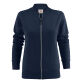 Sweatshirt met volledige, tweekleurige ritssluiting vooraan en lichtgebogen steekzakken. Het damesmodel heeft paspelzakken en een geribde opstaande kraag. De zippullers kunnen indien gewenst vervangen worden door één van de andere beschikbare kleuren. Oeko-Tex 100 gecertificeerd.