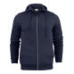 Sweatshirt met capuchon met tweekleurige ritssluiting vooraan en lichtgebogen steekzakken. De binnenzijde van de capuchon is single jersey. De zippullers kunnen indien gewenst vervangen worden door één van de andere beschikbare kleuren. Oeko-Tex 100 gecertificeerd.