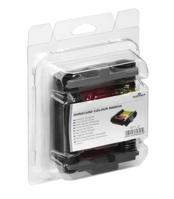 * YMCKO kleurenlint voor het bedrukken van 100 plastiek kaarten. * Fotokwaliteit. * Transparant vernist ter bescherming van de kaart. * RFID gecodeerd voor een snelle herkenning door de DURACARD ID 300 kaartprinter. * Gemakkelijk vervangbaar dankzij het compacte formaat.