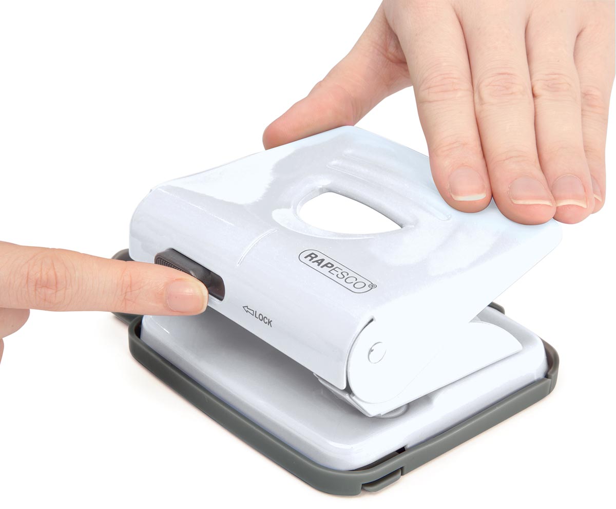 ProductinformatiePonscapaciteit: 25 vellen, metaal, geharde ponsen enhandvat, 2-gaats perforatie, rubberen bak voorresidu, afsluitbare platte handgreep, aanpassingsvenster, verstelbare papiergeleider.