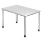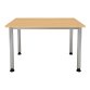 Gemelamineerde spaanplaat dikte 25 mm. Keuze uit 4 afwerkingen. Schokbestendige ABS-randen dikte 2 mm, afgeschuinde uiteinden. Hoogte van het werkblad regelbaar van 68 tot 76 cm. Zijpanelen (optioneel) in spaanplaat met aluminiumkleurige afwerking. Onderstel in aluminiumgelakte metalen buisstructuur. Onderstel regelbaar in hoogte via vijzels. Kabelgoot onder werkblad (optioneel).