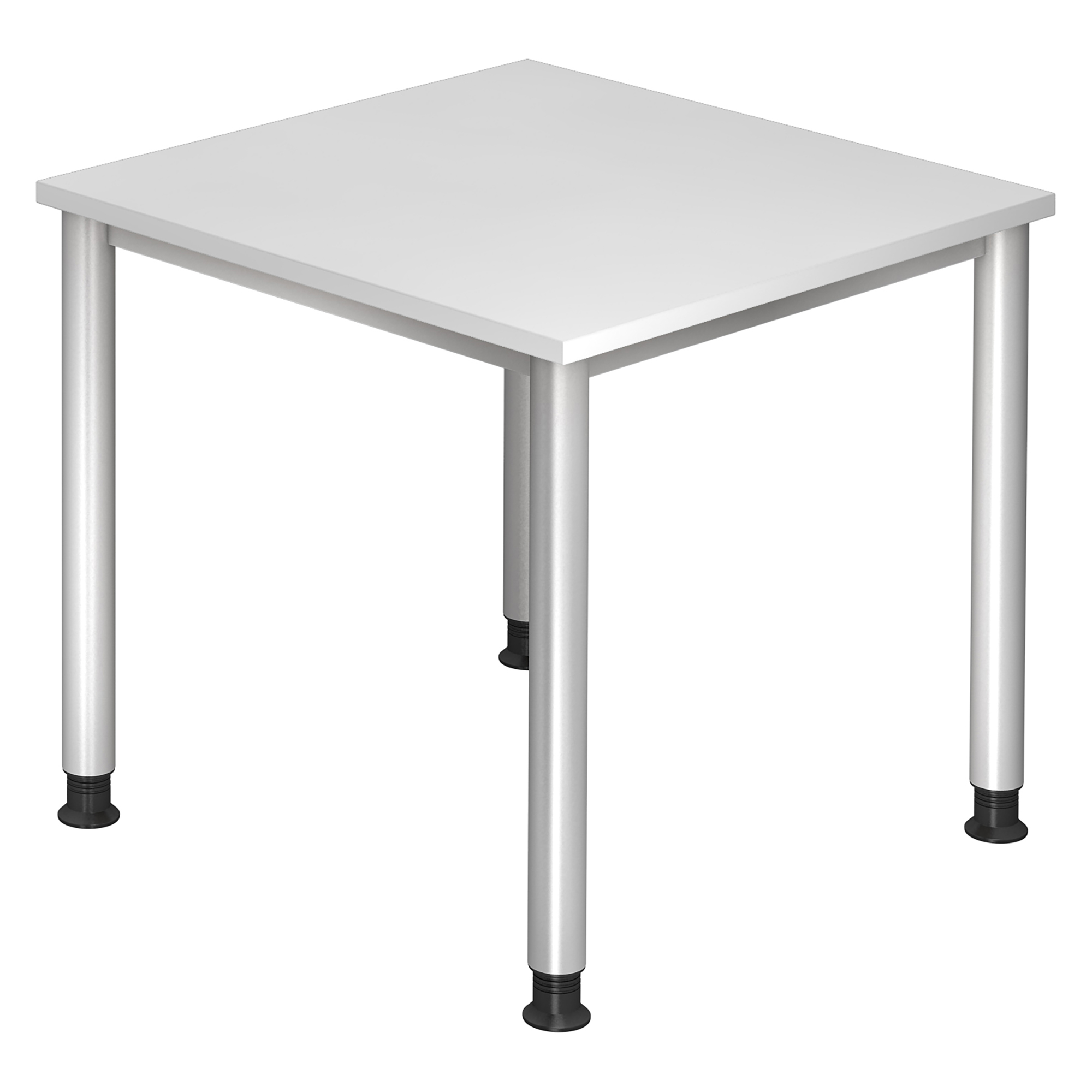 Gemelamineerde spaanplaat dikte 25 mm. Keuze uit 4 afwerkingen. Schokbestendige ABS-randen dikte 2 mm, afgeschuinde uiteinden. Hoogte van het werkblad regelbaar van 68 tot 76 cm. Zijpanelen (optioneel) in spaanplaat met aluminiumkleurige afwerking. Onderstel in aluminiumgelakte metalen buisstructuur. Onderstel regelbaar in hoogte via vijzels. Kabelgoot onder werkblad (optioneel).