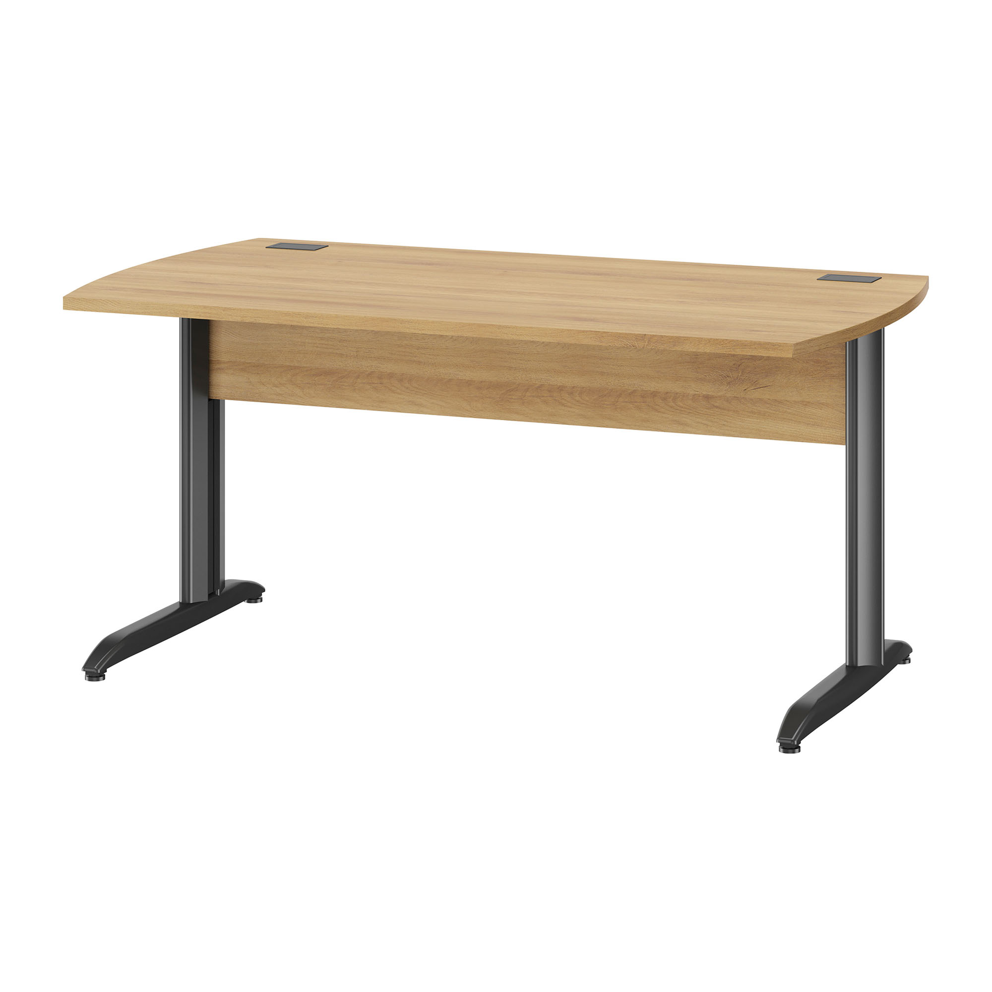 Recht bureau, met 25 mm dik afgerond blad in gemelamineerde spaanplaat met schokbestendige, 2 mm dikke halfronde randen.