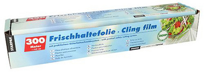 ProductinformatieBreedte: 300 mm, transparant, gemaakt van PVC-folie zonderDEHP-weekmaker, extreem hechtend en stevig, lengte: 300 m,filmdikte: 7,5 micron, rol in doos,dispenser met snijsysteem.