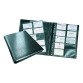 Tot 600 kaartjes, van formaat 57 x 90 mm. Map met 4 ringen, kaft met mat/glanzende afwerking met cijferpatroon. Geleverd met 20 hoesjes uit polypropyleen met 10 vakken (400 kaartjes) en 1 set van 12 alfabetische tabbladen. Formaat 31,5 x25,5 cm. Zwart.