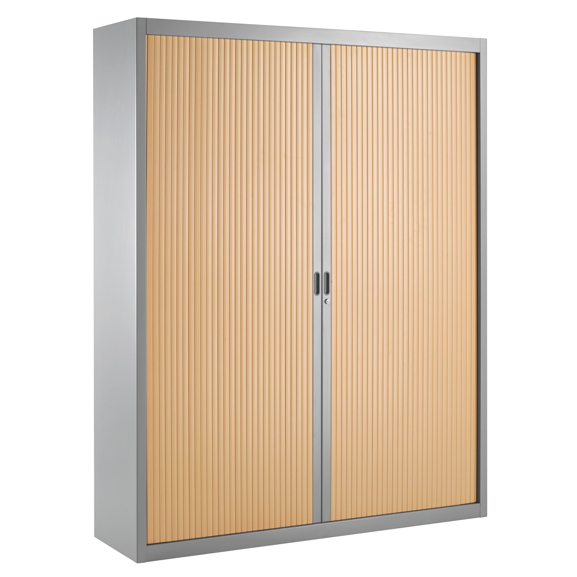 2 PVC-lamel rolluiken 25 mm niet brandbaar M1, de deuren schuiven volledig in de zijpanelen om gemakkelijk toegang te krijgen tot de inhoud en een volledig zicht te hebben.