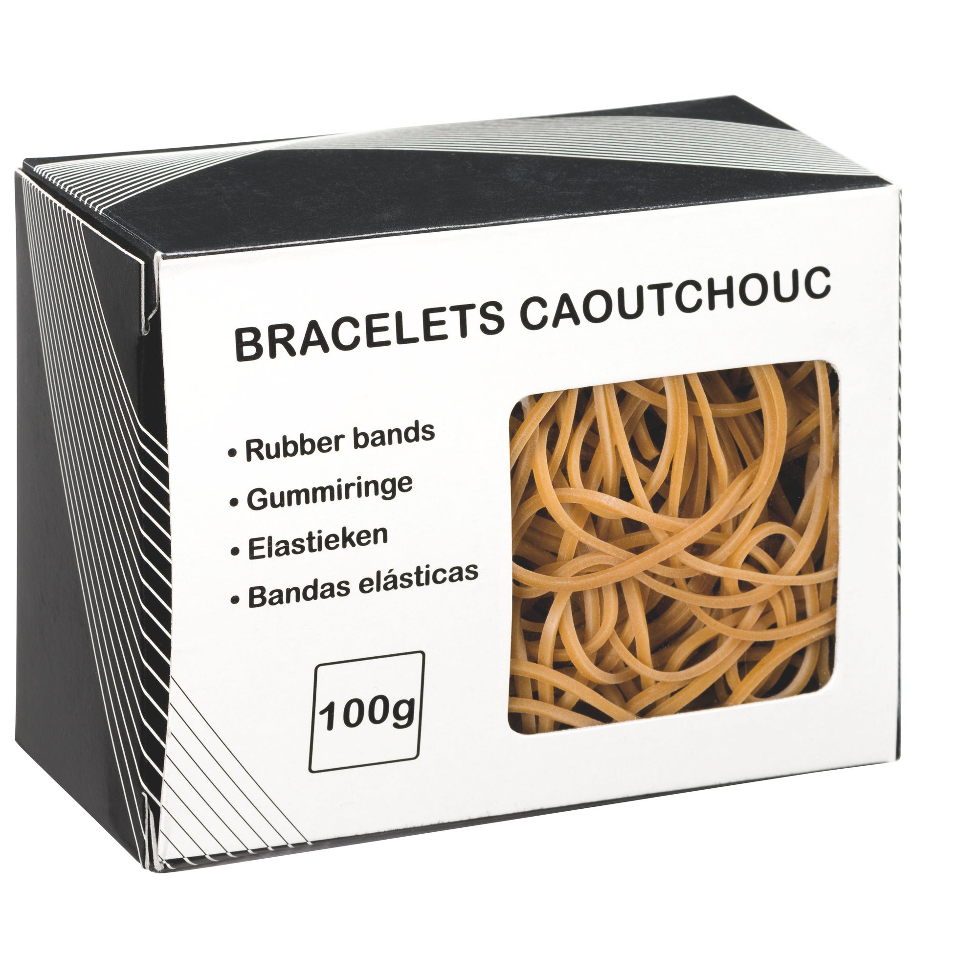 Dit product wordt aangeboden in een doos van 100 g, wat overeenkomt met 350 elastische bandjes van 80 x 1,5 mm.